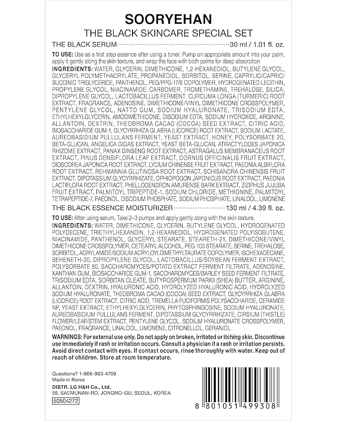 Sooryehan THE BLACK SKINCARE SET (160ml / 5.41 Fl Oz) - Korean Skincare Gift Set, Luxury Premium High-end by LG BEAUTY. Advanced Next Generation Bio Moisturizer & Serum.