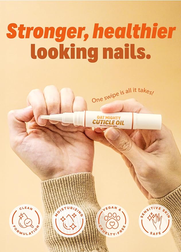 • Cuticle care made with 8% colloidal oats and botanical oils to provide moisture, protect, and nourish dry, brittle, cracked cuticles, nails, and skin. The nail repair for damaged nails, Oat Mighty Cuticle Oil is a nail strengthener and cuticle softener that needs to be in every manicure kit and pedicure kit.