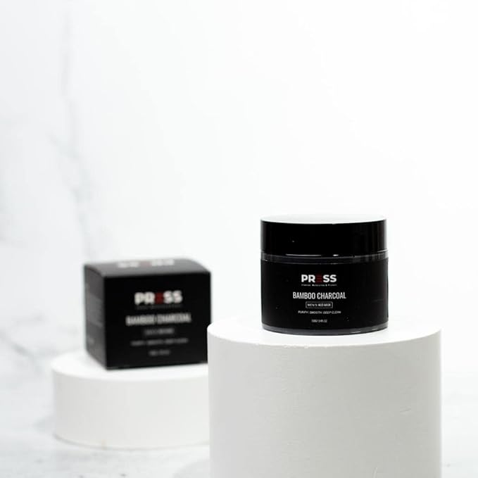 PRESS SKINCARE Bamboo Charcoal Face Mask| Mud Masks for Face | Face Masks Skincare for Men | Exfoliator, Pore Cleansing & Anti Aging Hydrating Face Masks Skin care |3.4 FL. OZ