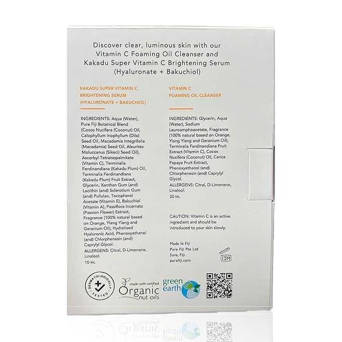 • Vitamin C Brightening Duo - Vitamin C Foaming oil (1 Fl.oz ) and Brightening Serum (0.33 Fl.oz), give skin an instant radiance boost while smoothing fine lines, balancing skin tone and boosting collagen.