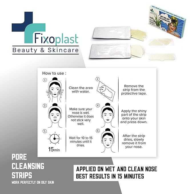 • -Fixoplast Pore Cleansing Strips are designed to remove blackheads from the nose, chin, and T-zone.