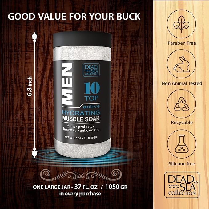 Dead Sea Collection Bath Salts for Men - Muscle Recovery Bath Soak - TOP 10 Active Mens Pure Dead Sea Salt for Soothing and Relaxing - 37 Oz