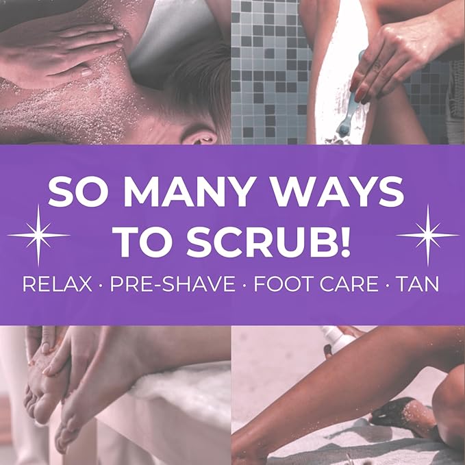 • EMBARK ON A LAVENDER ESCAPADE, enhance your spa routine, pre-shave ritual, foot pampering, or pre-tanning regimen with our Lavender Body Scrub. Experience the mesmerizing blend of lavender essence, shea butter, and coconut oil for a fragrant journey to a serene countryside.