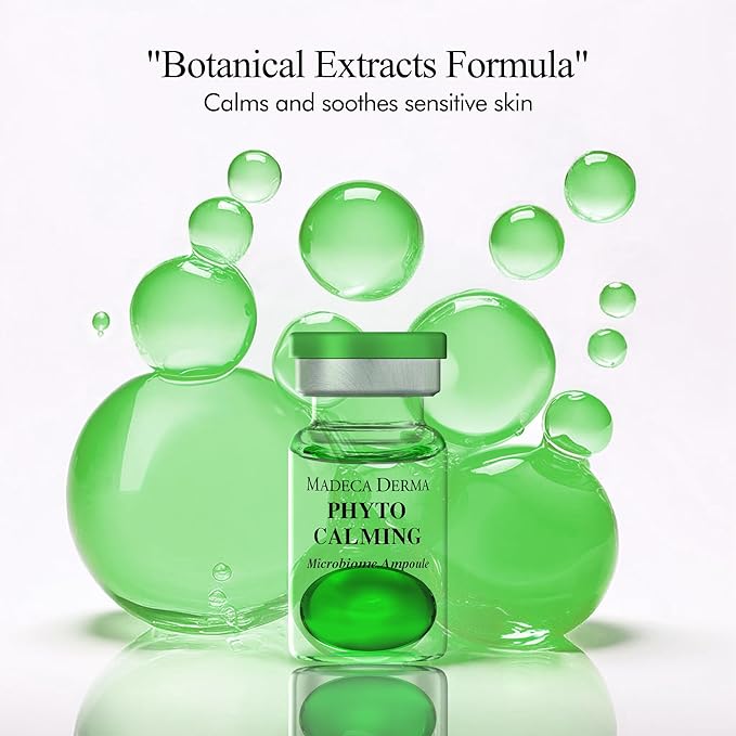 MADECA DERMA Phyto Calming Microbiome Ampoule – Calming with Soothing Botanicals, Hyaluronic Acid & Anti-Redness Complex, Korean Skincare for Redness Relief & Skin Repair (0.23 fl oz x 5 Bottles)