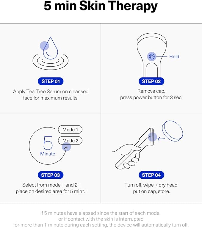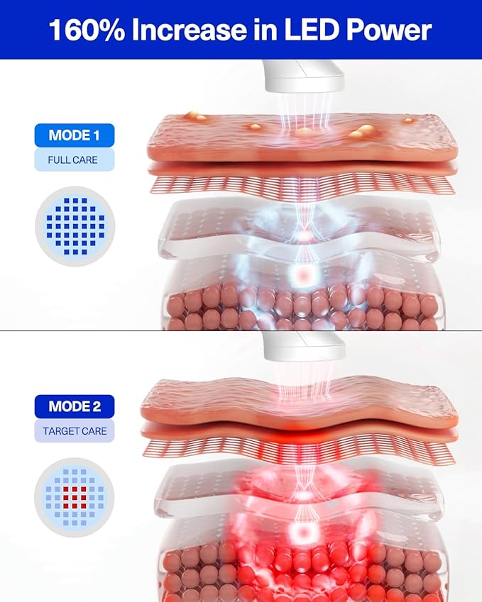 • 🔵 DUAL THERAPY MODES : Rejuvenating Mode has 625~850nm long red light beams to boost anti-aging properties, while Intensive Care Mode has 415nm long rays to improve concerns acne + prevent breakouts along with red + ir lights.