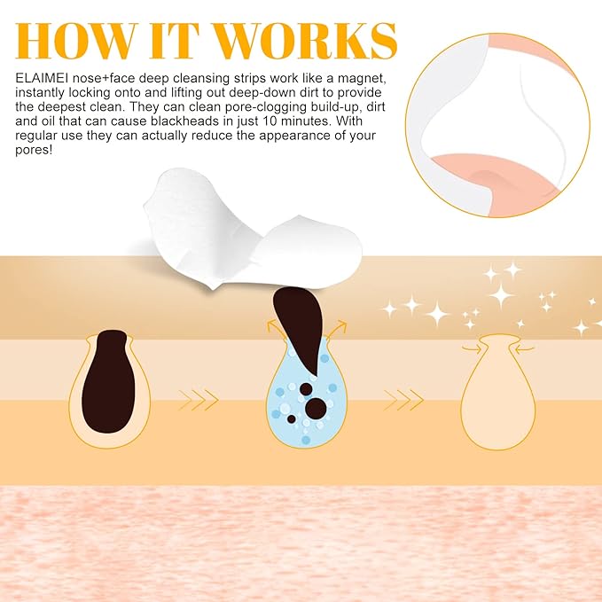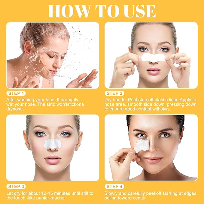 • Easy to Use: Cleaning and wetting the nose with warm water, peel the strip from its backing and apply to the nose or other affected area, leave the strip on for 10-15 minutes or until it feels stiff, then slowly peel off the strip.