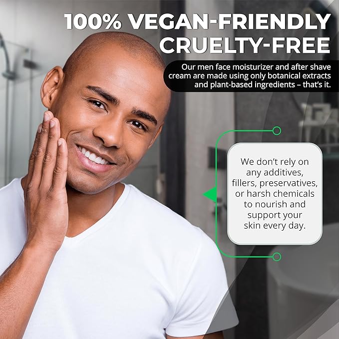- IMMEDIATELY SOOTHES IRRITATED SKIN (DAY): Irritation from razor burn following shaving is now a thing of the past. Our mens face moisturizer contains argan oil, shea butter & aloe. This simple face lotion and post shave balm calms, reduces redness & helps soothe shaving nicks.