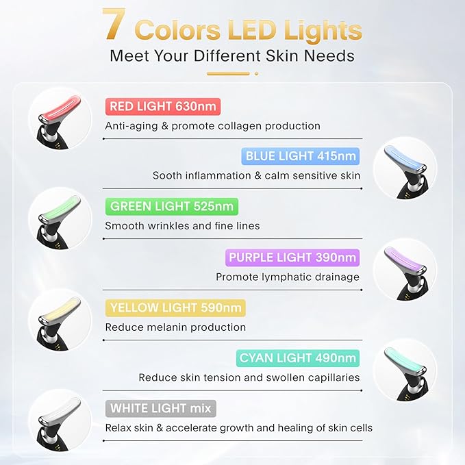 • Skin Care for Face and Neck - This multifunctional face neck massager has 7 LED light modes that can improve various skin problems with persistent use in daily skincare routine.