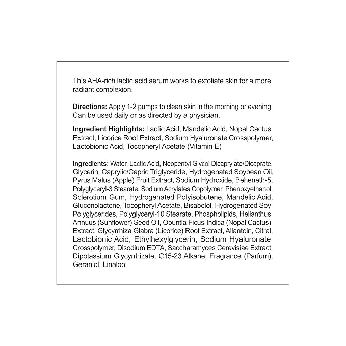 • Powerful Exfoliating Ingredients: The lactic acid serum polishes away the build-up of dead skin cells and excess sebum, which can lead to skin congestion, dullness, texture, blackheads, and, acne if left untreated.