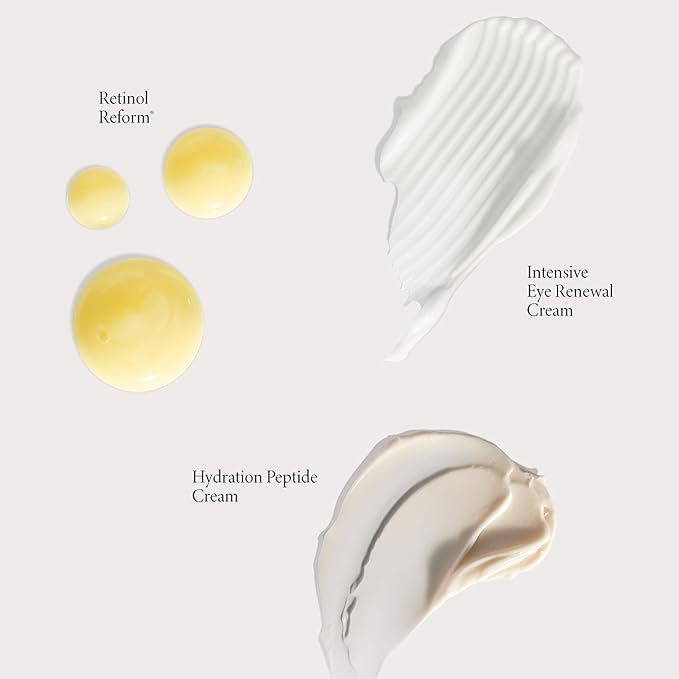 • Limited Edition Gift Set. An easy-to-use, skin-renewing regimen powered by Hydration Peptide Cream (2.5 fl oz), Retinol Reform (0.3 fl oz) & Deluxe Intensive Eye Cream (0.1 fl oz) for visibly smoother, more hydrated skin.