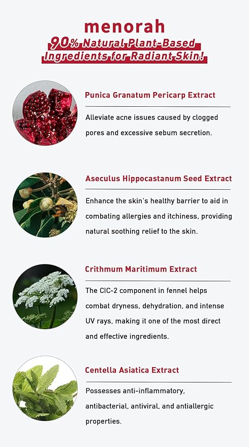 • 【Active Ingredients】: Punica Granatum Pericarp Extract / Aseculus Hippocastanum Seed Extract / Crithmum Maritimum Extract / Centella Asiatica Extract