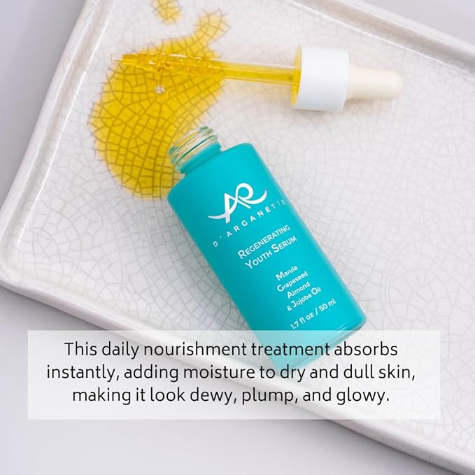 D'Arganette Regenerating Youth Serum Facial Oil Infused With Marula, Grapeseed, Almond & Jojoba Oil- Anti-Aging Moisturizer Face Oil For Dry Skin, Fine Lines & Wrinkles 1.7 oz- Made In USA