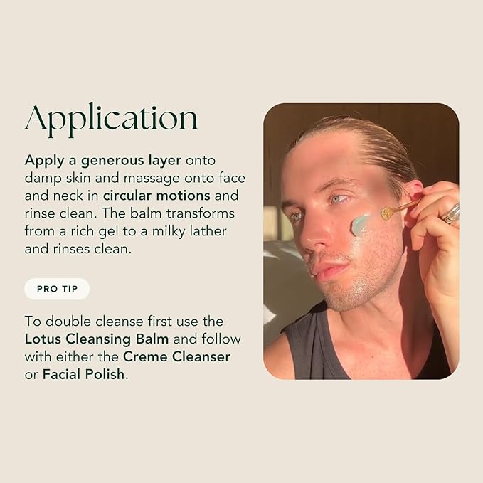 - Purifying Skin Care - Transform your complexion and start your double cleanse routine with this lotus oil cleansing balm. It's rich, jelly-like custard texture removes makeup, impurities and dirt, featuring mood enhancing notes of Indian Jasmine and Blue Tansy Oil. Suitable for all skin types, especially dry ones.