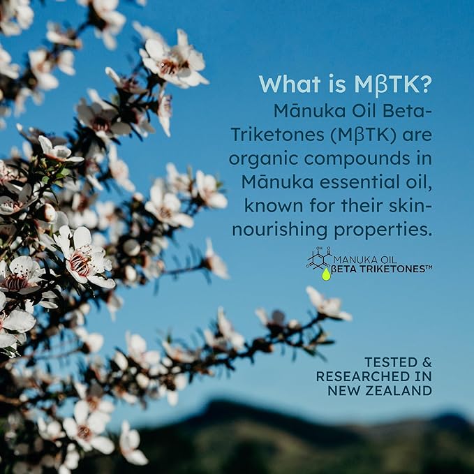• Nature’s nectar: leaves derived from the manuka plant are steam-distilled to create manuka oil, nature’s skin care powerhouse; it fights blackheads, reduces oiliness, soothes irritation, & combats acne while outperforming tree oil by 15X