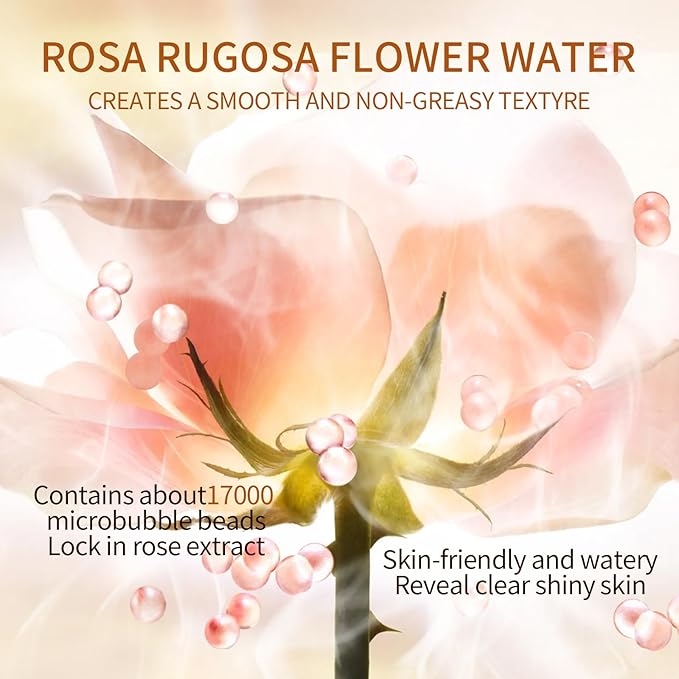 • Effect: Combine Rosa Rugosa Flower Water with Pro-Xylane and Hydrolyzed Pearl, rich in nutrients, relieves skin problems, nourishes and elastic, plump skin base.