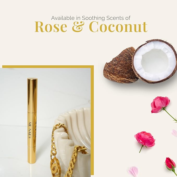 - Pure Goodness at Your Fingertips: Pamper your nailbed with our nail oil pen, a luxurious blend of jojoba oil, vitamin E, vitamin B, sunflower oil, and essential rose oil, leaving your cuticles soft and supple. Get yours in rose or coconut fragrances.