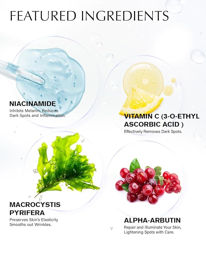 • Revitalizing Formula: Unleash the potential of our professional spot serum, enriched with potent components like 3-o-ethyl ascorbic and alpha-arbutin. Enjoy a refreshed, moisturized, and rejuvenated complexion.