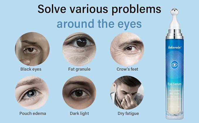 5% Caffeine Eye Serum, Anti-Aging Hydrating Eye Serum with 360° Massage Ball,Caffeine Eye Roller Reduce Wrinkles and Fine Lines,Under Eye Roller Cream for Dark Circles and Puffiness