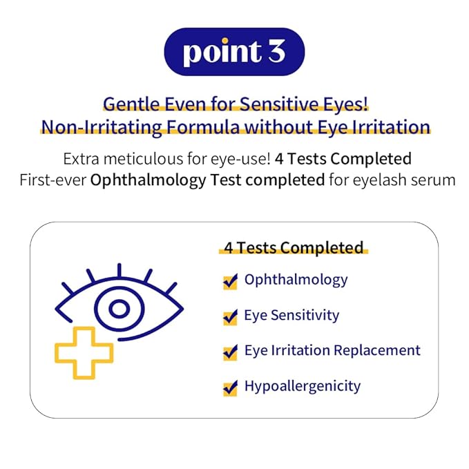 • Non-Irritating Formula without Eye Irritation: Extra meticulous for eye-use: 4 Tests Completed, First-ever Ophthalmology Test completed for eyelash serum.