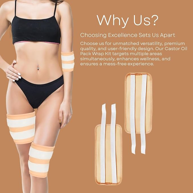 - ✔️ SUPPORTS MUSCLE HEALTH: The soothing warmth of the Castor Oil Pack Wrap can help improve circulation and promote joint and muscle health. Whether you're dealing with arthritis or other joint issues, regular use of the pack can help reduce pain and stiffness.