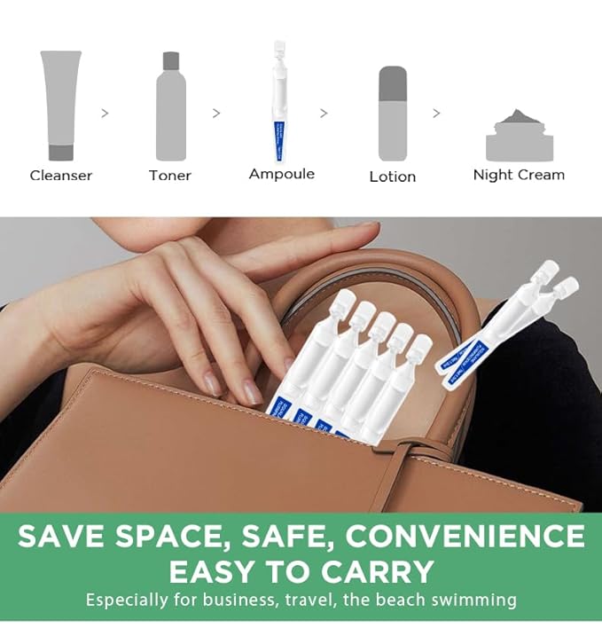 - 【How to Use】Hold the upper and lower parts of the BFS Ampoules Serum, then use two fingers and snap to open. Apply on cleansed face and neck until it is fully absorbed. Apply 1/2 or 1 ampule twice daily. Not fragile, easy to open without hurting hands. It's easy to carry and save space, especially for travel, business trip and vacation.