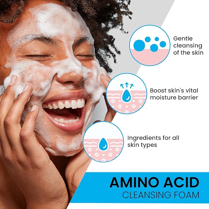 - 4 ESSENTIAL AMINO ACIDS: Immerse yourself in tranquility with our fusion of four essential amino acids. Beyond gentle cleansing, this formula guarantees a non-tightening sensation while maintaining moisture balance, pH levels, and combating dryness. Experience deeply nourished and balanced skin