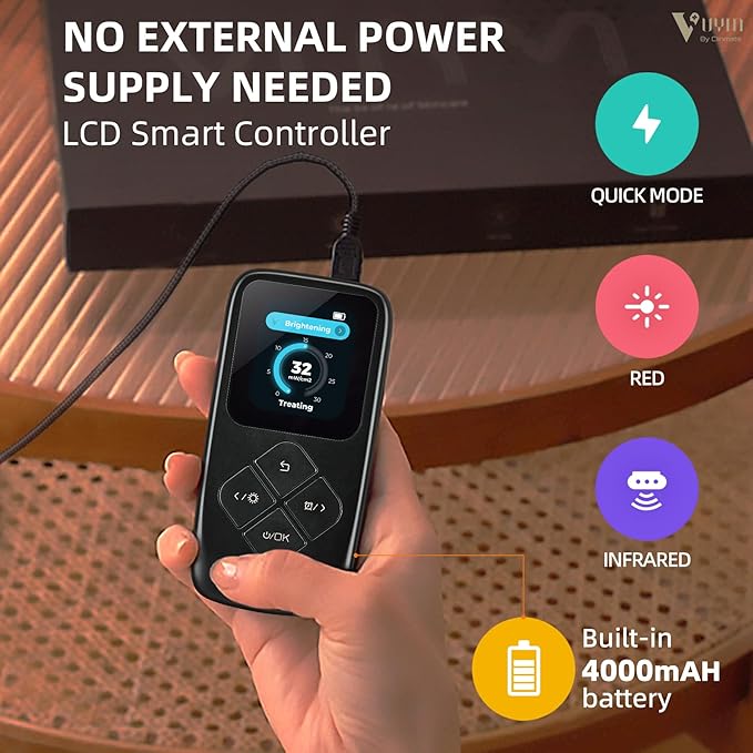 - EASY OPERATING BY LCD REMOTER: The VYM led mask light therapy is equipped with an smart controller with LCD is available for Quick and Professional Modes . There 3 quick modes for brightening, anti- aging and soothing skin, 2 professional lighting therapy for infrared and red. It can firm skin, reduce wrinkles, even skin tone and relieve faical tension by quick light therapy or professional modes