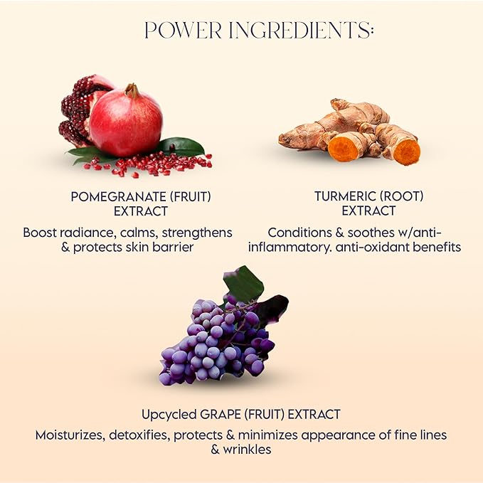 - Special Ingredients : Grape (Fruit), Pomegranate (Peel), Tumeric Extracts, Alba & Sunflower (Seed) Oils