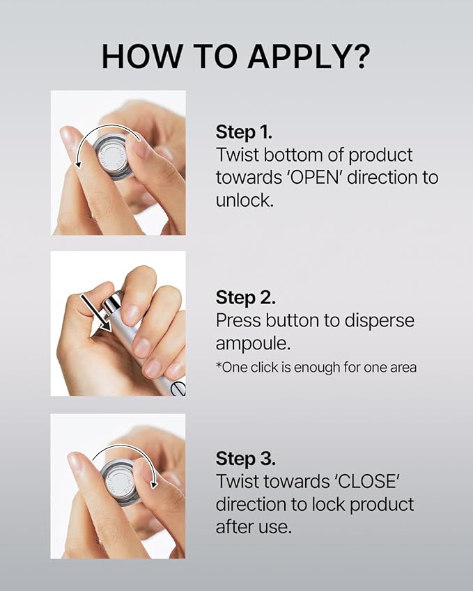 • PRO-TIP: If it is your first time using the product, you may need to prime the pump. To do this, press the button several times until serum starts to come out.