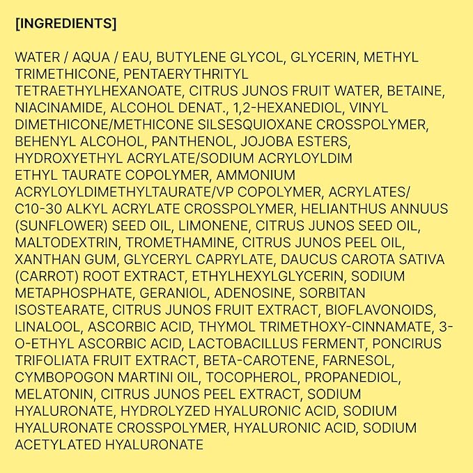 • 6 WHOLE KOREAN YUJA (YUZU) IN ONE BOTTLE: The peel, flesh and seed of 6 whole Yujas are used as ingredients. This antioxidant-rich formula is fortified with vitamins C, E, B, A and P from authentic Goheung Yuja and benefits your skin from skin brightening to protection.