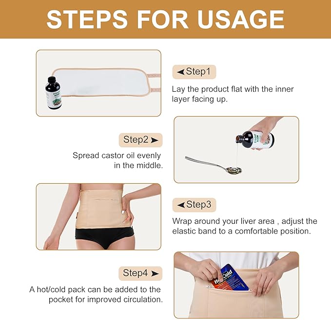 - Castor Oil Pack Wrap Skin Friendiy Material : The organic castor oil wrap is made from organic cotton, which is skin-friendly, Comfortable to wear,low-allergenic, and machine washable,Reusable. The outer layer of the pack is made from TPU (thermoplastic polyurethane), a waterproof and oil-resistant material that helps prevent oil leakage. The inner layer is made from soft organic cotton flannel Cloth fabric, which is absorbent