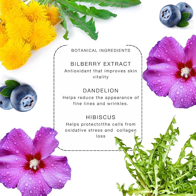 • MADE WITH BOTANICAL AOX (antioxidant) BLEND: Hibiscus, Bilberry, Pomegranate, Picea Abies and Dandelion extracts are known for their skin protective antioxidant, brightening and circulation promoting effects