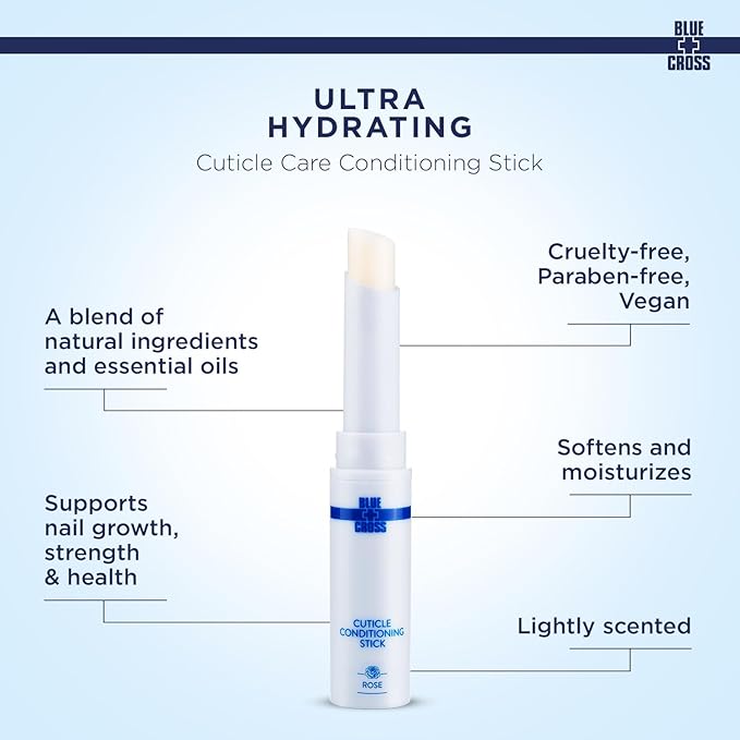 - NATURAL INGREDIENTS: Blue Cross cuticle conditioning balm stick is enriched with a blend of natural ingredients and essential oils, Sunflower Seed Oil, Grape Seed Oil and Shea Butter to support nail growth, strength and health.