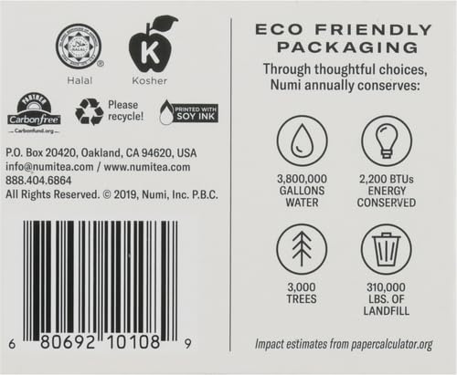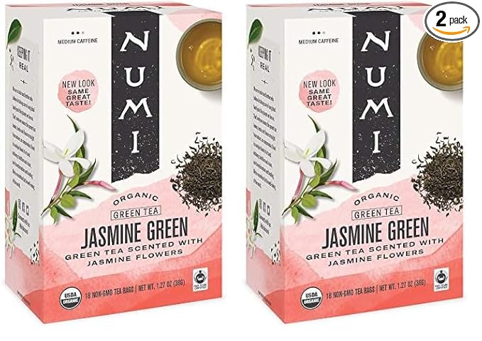 Numi Tea Jasmine Green Tea - Medium Caffeine - 18 Bags (Pack of 2)