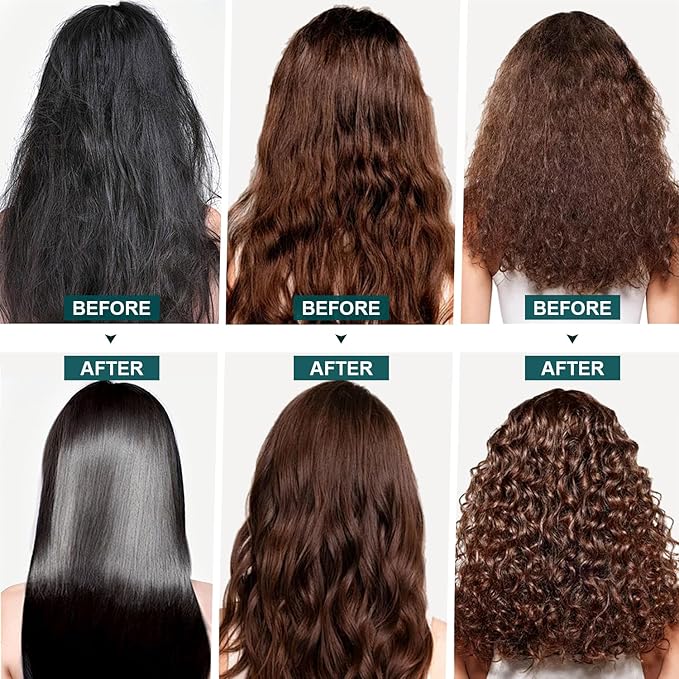 - For All Hair Types: This hair mask is suitable for curly, dry, frizzy and any damaged hair, including color treated and chemically processed hair. It helps repair damage caused by daily styling, coloring, and heat, reducing breakage and split ends, making the hair stronger.