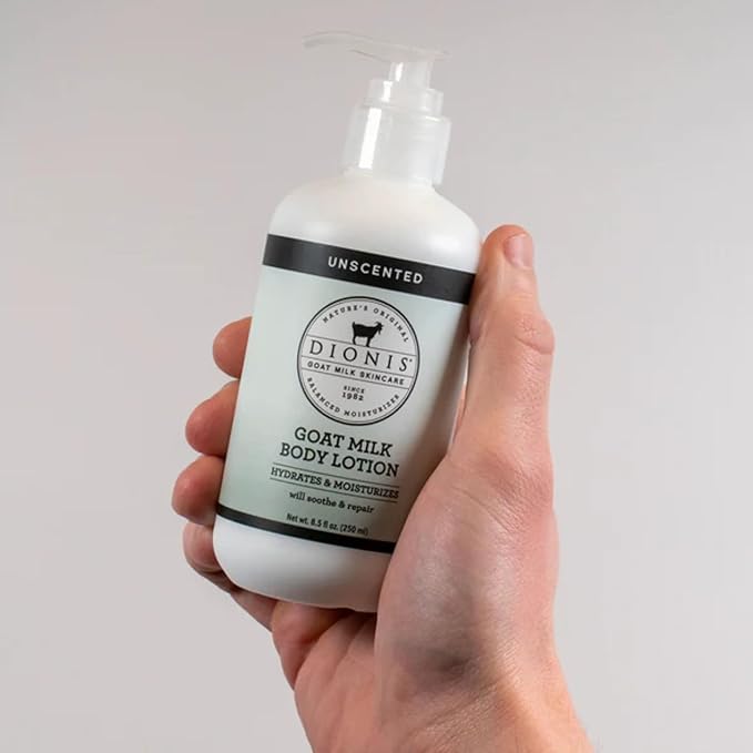 - Skin's Best Friend - The Dionis goat Milk Skincare Lotion is rich and creamy. With regular use it’s designed to ease rough skin, making it smooth and silky. It also does not leave a greasy residue like many lotions, so you can apply it right before putting on your favorite sweater