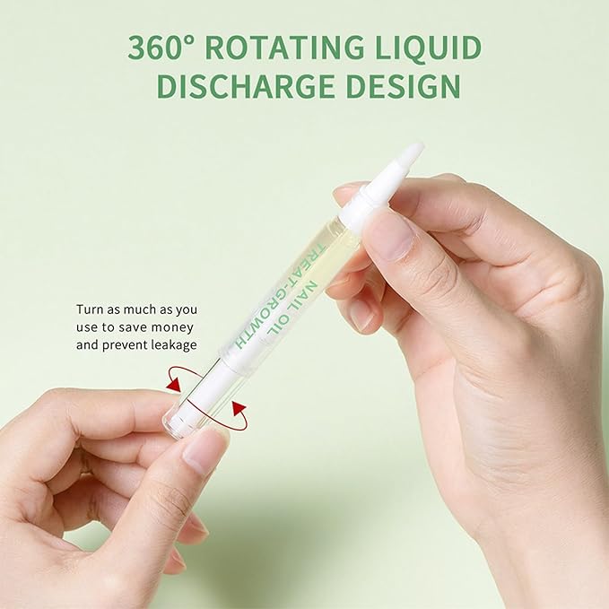 - 【Easy to Use】360°rotating liquid discharge design, cuticle oil can turn as much as your usage, for mess-free and precise application, with no more spills or waste. The ingredients are mild, skin-friendly, have no side effects, and protect nails.
