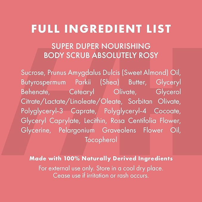 • HANDMADE HEROES NOURISHING ROSE SCRUB an ultra nourishing and conditioning body scrub, hand scrub and foot scrub. Made with crushed rose petals and geranium flower