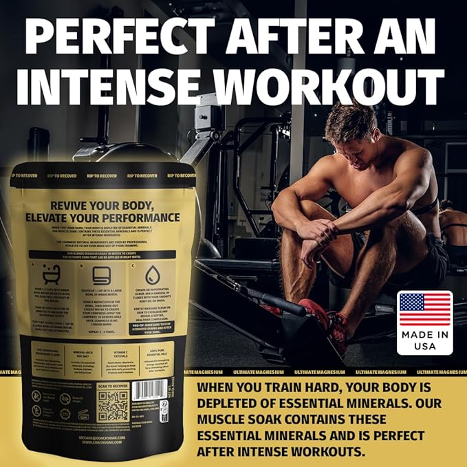 - Discover muscle and joint support with our USA-made bath soak. Infused with fast-absorbing magnesium flakes, mineral-rich Dead Sea salts, and Vitamin C crystals, and free from artificial colors or preservatives. Perfect for both men and women, indulge in a 20-minute soak for a refreshing bath.