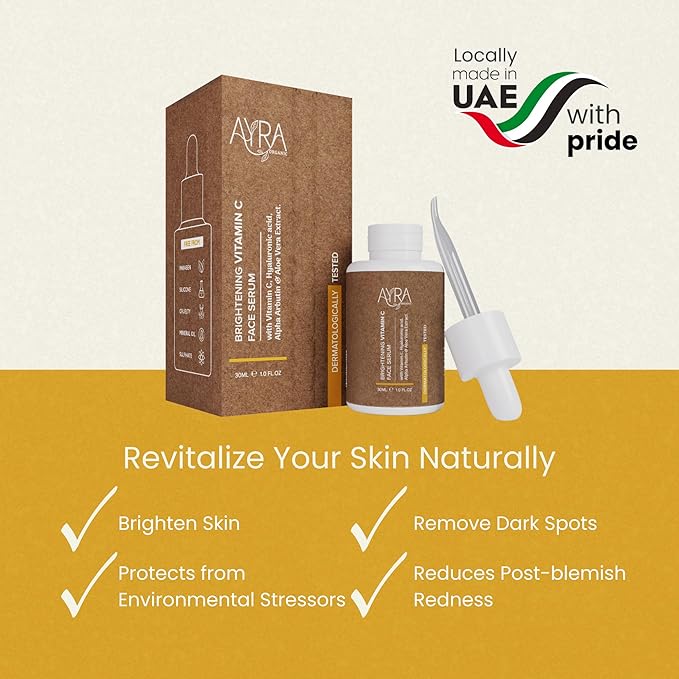 - Organic and Natural Ingredients: Our Brightening Vitamin C Face Serum is expertly formulated with organic, natural components, including Vitamin C, Hyaluronic Acid, and Aloe Vera Extract. Nourish and rejuvenate your skin without harmful chemicals for a healthier glow.