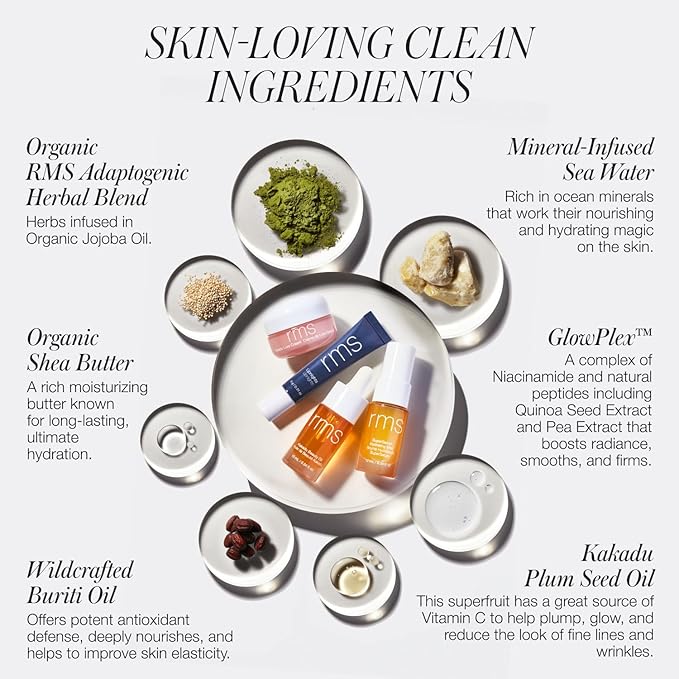 RMS Beauty Skincare Secrets Kit - Skin Care Set Kakadu Beauty Oil, Kakadu Luxe Cream, SuperSerum Hydrating Mist & Lipnights Lip Mask, Beauty Present Sets