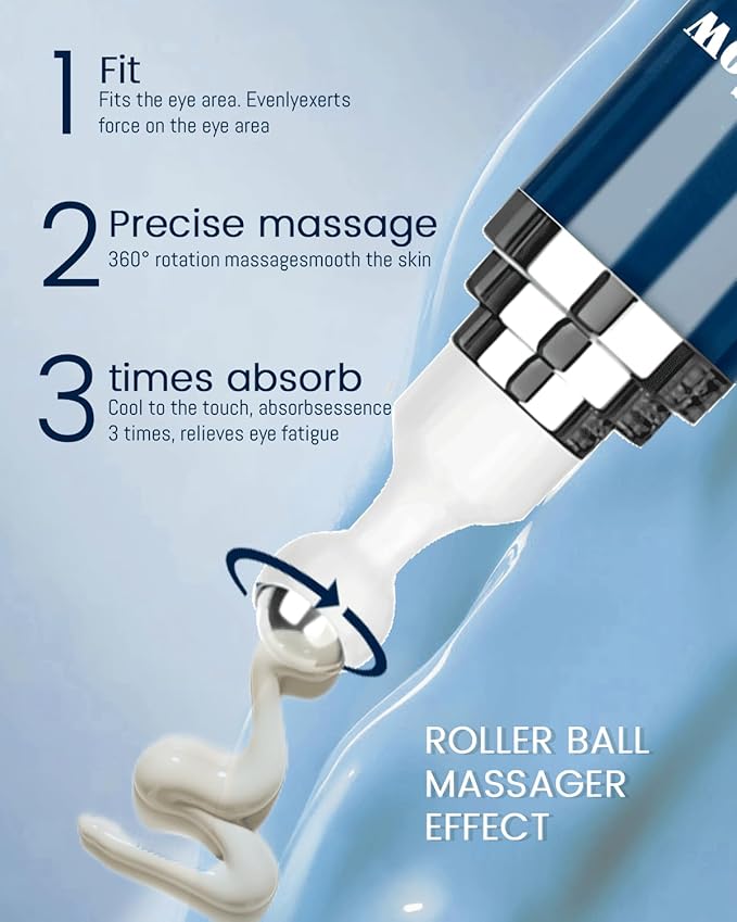 • 360° Massage Ball Eye Roller Cream: Experience a soothing massage with every application of our eye roller cream. The 360° angle design perfectly contours to the delicate eye area, providing a gentle yet effective massage that stimulates blood circulation and helps to reduce puffiness and dark circles.