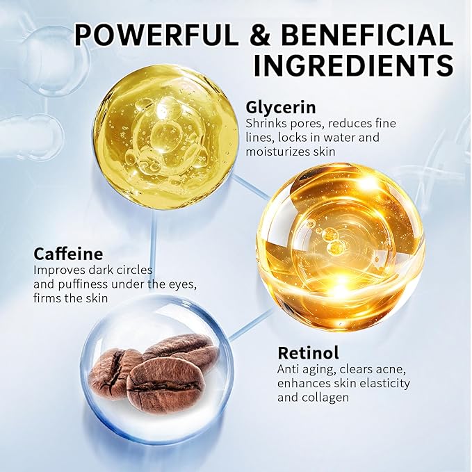 - Anti-Aging Eye Cream: The caffeine eye cream reduces wrinkles, fine lines and dark circles, improves skin elasticity, which helps nourishes the area around your eyes, prevent signs of aging and creates a barrier for the skin