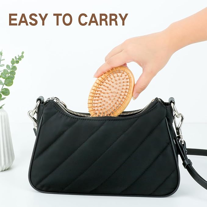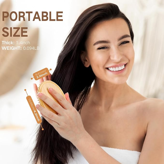 • Handle-Free Design: This portable bamboo hair comb, measuring 4.2 x 2.6 inches, is perfect for massaging the scalp anytime, anywhere to promote hair growth
