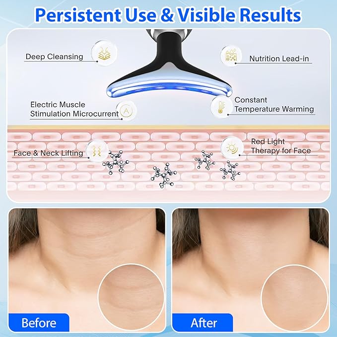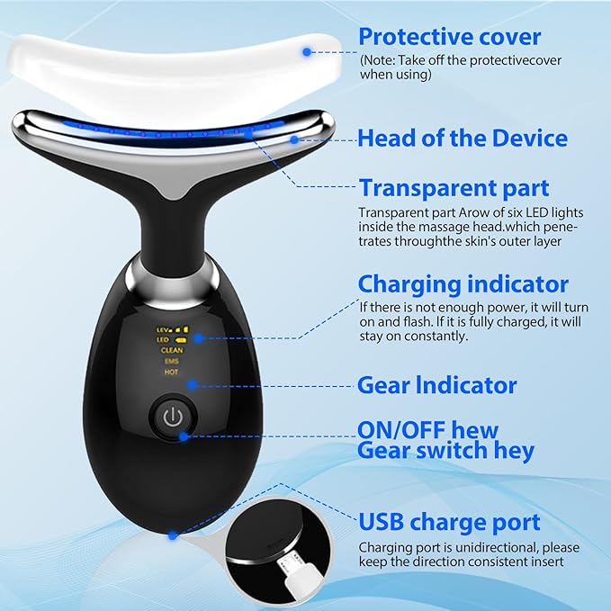 • Ergonomic design:Stylish appearance, ergonomic design, perfect fit for face, neck, hands, legs, etc. Consistent use of this face lift device can greatly improve neck wrinkles