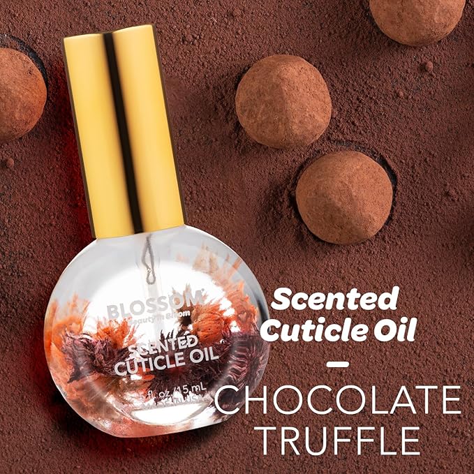 Blossom Cuticle Oil for Nails, Hydrating, Moisturizing, Gourmand Scented Nail Oil Cuticle Care, Infused with Real Flowers, Made in USA, 0.5 fl. oz, Chocolate Truffle