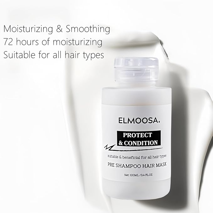 • Moisturizes and softens the hair, finding its own shine. ELMOOSA's Pre-Shampoo Hair Mask formula locks in moisture and deeply hydrates hair while keeping it soft and hydrated for longer.