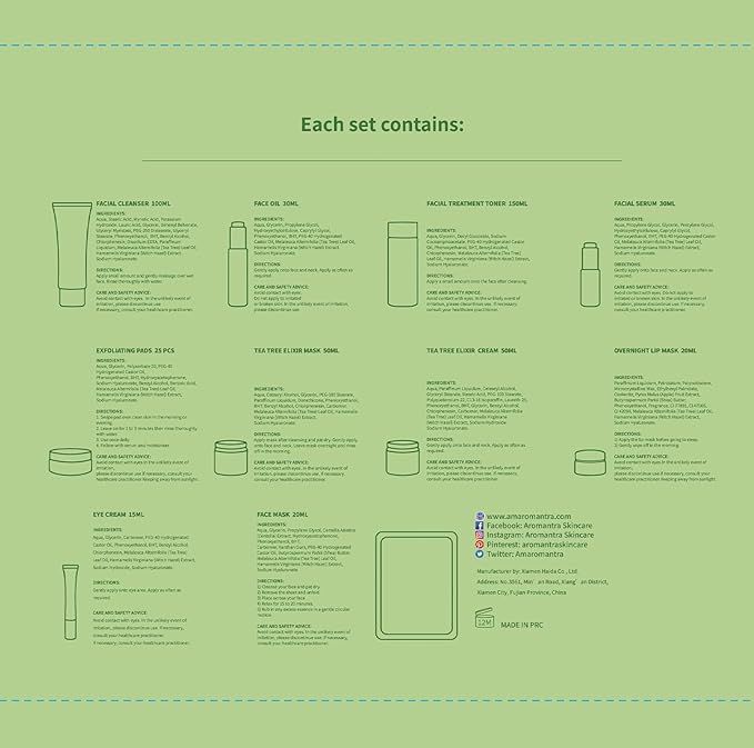 - 【Balanced Skin Care Solution】 This set provides a balanced approach to skincare by addressing multiple needs. Tea Tree Extract and Witch Hazel work together to cleanse and clarify the skin, while Hyaluronic Acid ensures it remains hydrated and supple. This combination helps maintain a clear, healthy complexion while preventing dryness