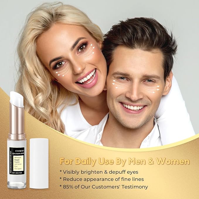 - Easy to Apply: After cleansing your eyes, gently glide our snail peptide eye stick around your entire eye area in small, circular motions. We recommend starting with once every 2-3 days to allow your skin to adjust to the snail peptide, after 1 week, you can apply once daily at night or twice a day (once in the morning and once in the evening).