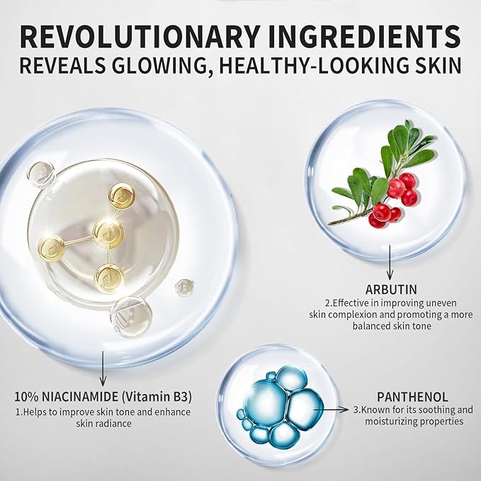 10% Niacinamide Serum, Panthenol, Arbutin Face Serum to Help Improve Uneven Skin Tone and Soothing Skin, Hydrating Serum for Radiant Skin, 30 ml